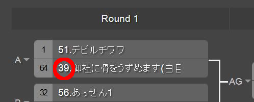 The bracket's number in red circle corresponds to normal tournament's entry number.